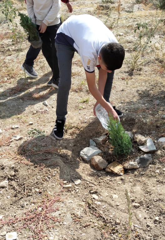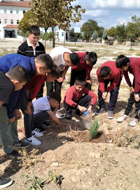 Bugün ilk ders zili çaldı. Okuluna heyecanla gelen öğrencilerimizin ilk dersi YEŞİL VATAN oldu. Bu kapsamda çeşitli slayt, video ve görsellerle Yeşil Vatan teması işlendi. Okul bahçesine öğrencilerimiz ağaç dikip var olan ağaçların bakımı yaptı.